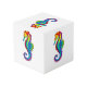 Artistically drawn, bright, rainbow, polygonal seahorse on white background. Bright tattoo.