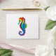 Artistically drawn, bright, rainbow, polygonal seahorse on white background. Bright tattoo.
