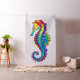 Artistically drawn, bright, rainbow, polygonal seahorse on white background. Bright tattoo.