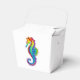 Artistically drawn, bright, rainbow, polygonal seahorse on white background. Bright tattoo.