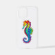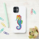 Artistically drawn, bright, rainbow, polygonal seahorse on white background. Bright tattoo.