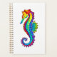 Artistically drawn, bright, rainbow, polygonal seahorse on white background. Bright tattoo.