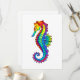 Artistically drawn, bright, rainbow, polygonal seahorse on white background. Bright tattoo.
