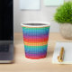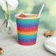 Colourful paper party cup features rainbow pop it pattern that looks like popular fidget / sensory toys and accessories.