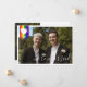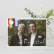 Charmante carte de faire-part mariage lgbt avec le drapeau de la fierté arc-en-ciel dessiné avec des touches désordonnées et orné d'un coeur blanc et d'une bordure blanche. Carte de faire-part gay double face personnalisée avec vos photos de mariage. Faire-part de elopement gai avec traits de peinture arc-en-ciel et votre photo. Elopement thématique Fierté faire-part personnalisé avec photos.