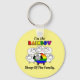This Rainbow Pride keychain features a flock of white sheep. In front of the flock is a singular sheep with the colours of the LGBTQ flag. The text reads, 'I'm The RAINBOW Sheep Of The Family.' Background colour can be customized.