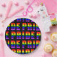 Rainbow Pride Text Art on Custom Black Colour Paper Plate