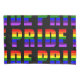 Text "PRIDE" is repeated. Letters filled with the colours of the rainbow. Solid background can be replaced with any colour - black by default. Darker colours make the text stand out more.