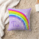 Colourful girls purple rainbow hues pillow designed by exclusively by Sarah Trett. Customise with a short name or initials of your choice, this example reads Tia. Would be a great additional to kid's room or when several children are sharing.