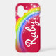 Bright rainbow and stars graphic design case. Personalize with your own short names and nicknames. This example reads Ruby. Exclusively designed and illustrated by Sarah Trett for www.mylittleeden.com