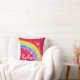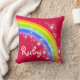 Colourful girls red & orange rainbow hues pillow designed by exclusively by Sarah Trett. Customise with the name of your choice, this example reads Ruby. Would be a great additional to kid's room or when several children are sharing.