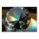 A glass diamond paperweight on holographic paper.