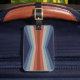Abstract retro style reflected rainbow illustration with blue, beige, navy blue, brown, red and rust colour striped decoration