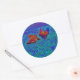 Rainbow Rooster & Hens, Electric Blue Classic Round Sticker