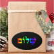 Simple text design in a rainbow of colours saying Shalom in Hebrew. You can change the background colour.