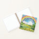 Beautiful personalized colourful kid's sketchbook for all of their amazing drawings, paintings or doodles. Image is a rainbow and blue sky with clouds over rolling countryside with trees and pretty pink and yellow flowers. They can paint, crayon, draw and doodle to their hearts content to help their mental health stay positive and happy in their own personalized sketchbook. You can change the title and add a name by clicking on the personalize button. Change 'inside paper design' on the right of the image, choose from lined paper, bullet, sketch, graph, recipe, checklist and more.