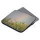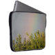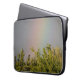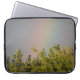 This awesome laptop bag features a beautiful landscape photo of a rainbow over the top of some trees. The photograph was taken immediately after a rainstorm to capture the vivid colours of the rainbow. The surrounding sky is grey with cloud cover.