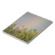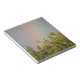 This awesome notepad features a beautiful landscape photo of a rainbow over the top of some trees. The photograph was taken immediately after a rainstorm to capture the vivid colours of the rainbow. The surrounding sky is grey with cloud cover.
