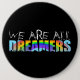 Original digital illustration with rainbow and skyline of US cities for The Dreamers on black colossal button. You can easily change text "we are all" (font colour, size and position) by clicking the customize button. Matching shirt and more...