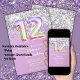 Rainbow sparkle glitter birthday party invitation for a 12 year old girl with elegant script writing and fun number foil balloons.