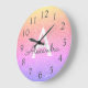 Rainbow Sparkle Glitter Monogram Name & Initial Large Clock