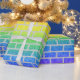 This colourful and fun wrapping paper design features an exciting rainbow spectrum inspired brick wall pattern having a pixelated look inspired by the appearance of 1980s 8-bit computer games. Wrapping paper like this might be fun to use when giving presents or gifts to somebody who enjoys playing classic video games.