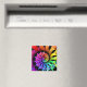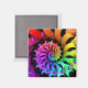This magnet features a fractal art spiral with a rainbow of colours, including red, orange, yellow, green, blue, purple, and pink on black.