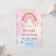 Pastel Pink Watercolor Cute Illustrative Rainbow Little kids Birthday Party Invitation