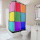Colourful rainbow squares on black background designed shower curtain. Add text or photos. Can also be used as window curtains or a photo backdrop.