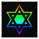 This rainbow gradient beneath the black Star of David is created from pure shades of red (FF0000), yellow (FFFF00), lime green (00FF00), aqua or cyan (00FFFF), blue (0000FF) and magenta (FF00FF). If you'd like to add a custom text message try using those six-digital hexadecimal values and check the results.