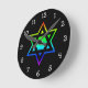 This rainbow gradient beneath the black Star of David is created from pure shades of red (FF0000), yellow (FFFF00), lime green (00FF00), aqua or cyan (00FFFF), blue (0000FF) and magenta (FF00FF). If you'd like to add a custom text message try using those six-digital hexadecimal values and check the results.