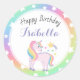 Rainbow Stars & Magical Unicorn Happy Birthday Classic Round Sticker
