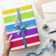 Bright Rainbow stripes are featured on this colourful wrapping paper.
