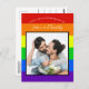 This bold rainbow striped wedding invitation postcard features a custom romantic LGBTQ engagement photo for a gay or lesbian couple who loves bright and colourful striped announcement. Personalize this cheery LGBT Save the Date photograph card with your names, date, and location on the red, orange, yellow, green, blue, and purple stripes.