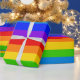 A seamless, continuous roll of seven colour rainbow stripes wrapping paper in the seven rainbow colours of red, orange, yellow, green, blue, indigo, violet, also known as RoyGBiv and roygbiv. Longest roll is 15 feet, rolls longer are printed in multiple rolls of 15 feet.
