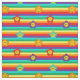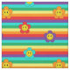 Vibrant rainbow colours striped fabric with cute daisy flowers with smiling faces
