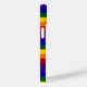 Red, orange, yellow, green, blue, indigo, violet: the colours of the rainbow are presented in vertical stripes in this design. The festive rainbow sequence repeats across the design.
