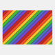 These wrapping paper sheet features rainbow stripes, with each sheet having different width of diagonal stripes.
