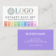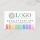 Loyalty pays off punch card printed with your logo and with rainbow stripes, a cute heart, and charming fonts. Add your business name and contact info on the other side in white on purple. A colourful and fun loyalty card with fields in rainbow colours from red to yellow to green to blue to purple to pink with a little heart and your logo. Loyalty card template you can personalize with logo, business name, and contact info.