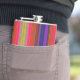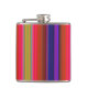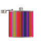 This brilliantly coloured hip flask is decorated with an abstract striped pattern in a spectrum of orange, purple, yellow, red, green, violet and black which resembles a beautiful rainbow.
