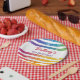 Looking for unique and Rainbow Stripes Personalized Name Year Birthday Paper Plates? Grab these trendy paper plates and personalize the text in the centre of the circle. Perfect for any age birthday party tableware or any celebration! Coordinates with the rainbow heart balloons birthday party invitations. Contact us for more coordinating party supplies!