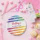 Rainbow Stripes Personalized Name Year Birthday Paper Plate
