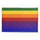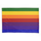 Red, orange, yellow, green, blue, indigo, violet: the colours of the rainbow are presented in vertical stripes in this design. The festive rainbow sequence repeats across the design.