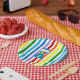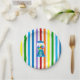 Rainbow striped party plates with a blue gumball machine. This design will add lots of colorful cheer to your next party! Be sure to take a look at our coordinating party supplies. If you do not see what you need, I am happy to create something special for you.