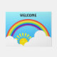 This product has a fun summer sky illustration with rainbow, clouds and sun. On the top there is a word "Welcome" in black colour. You can easily edit this text or remove it altogether. It's a cute funny design and will be great for anyone especially kids.