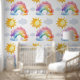 repeat pattern clouds, sun, and rainbow kids room decor