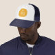 "Rainbow Surfboard Aloha" Hat with a illustration of a surfboard, rainbow and waves.