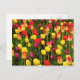 Purple, red, orange, and yellow combine in a lovely multicolored tapestry against the dark green background of leaves and stems at the Skagit Valley Tulip Festival in Mt. Vernon, Washington.