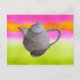 From an original illustration of a teapot drawing in graphite pencil against a rainbow multi-coloured pink, orange and green watercolour background. This delicate and arty hipster style piece is colourful and bright and reminds one of a tea party.