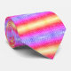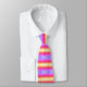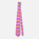 Tie with bright and friendly horizontal stripes of pink, yellow, and purple on an abstract honeycomb background.